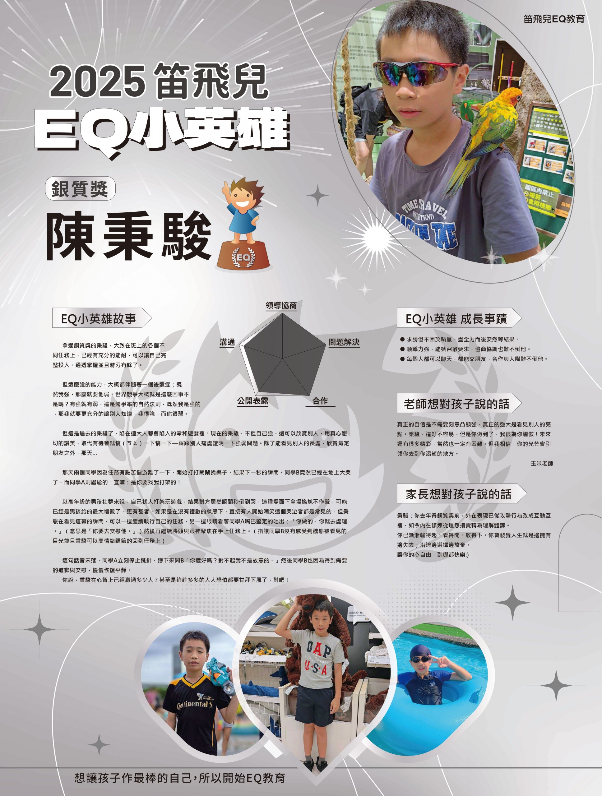 EQ教育的深耕和高信累積情緒調節﹑挫折容忍﹑合作溝通⋯等EQ能力,讓現在的高信能有把握的自帶信心,勇闖優勢舞台,成功在2024年的International Youth Robot Competition 2024 拿下了Creative Design Silver Award,以及RoBoCup Asia-Pacific 2024 (機器人世界杯亞太賽) 與同伴一起做的救援機器人拿到了青少年U19組亞軍,看見最棒的自己!
