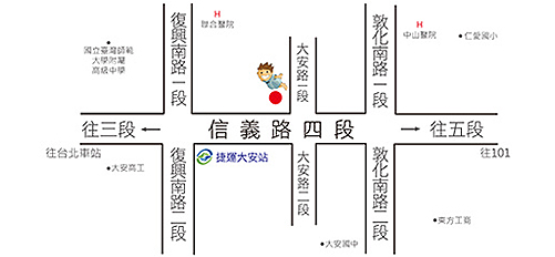 捷運 大安站(文湖線) 6號出口,步行約 3-5mins公車 信義敦化 or 信義大安路口站 ( 可搭乘 20、22、38、41、226、以及信義幹線)