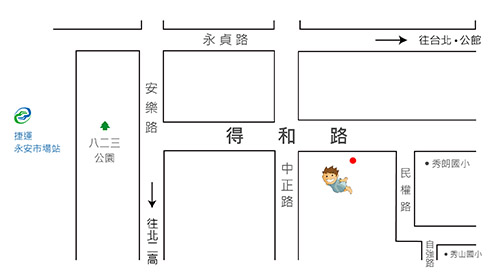 捷運 永安市場站(中和新蘆線) -步行約10-12mins公車 得和路站 - 可搭乘51、207、54、672、1032、1505、橘2