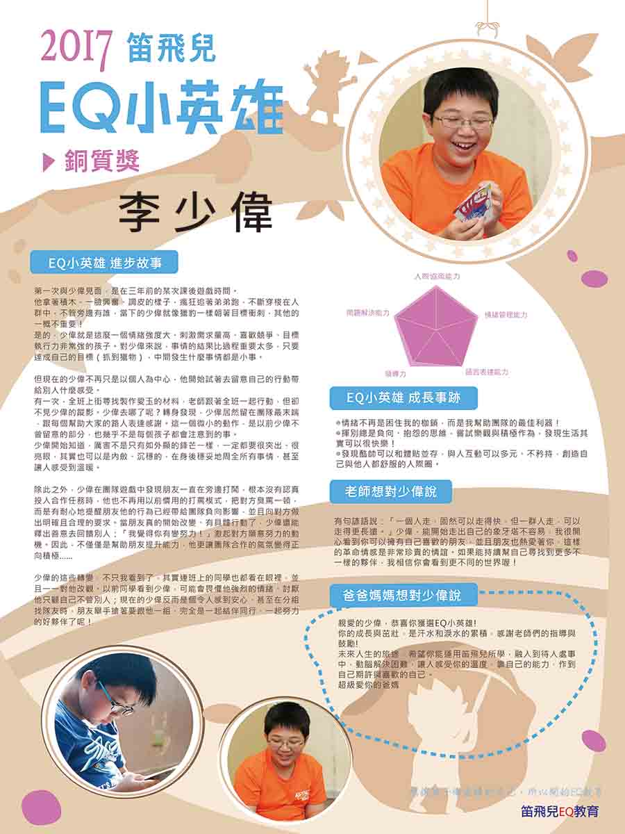 親愛的少偉,恭喜你獲選EQ小英雄!