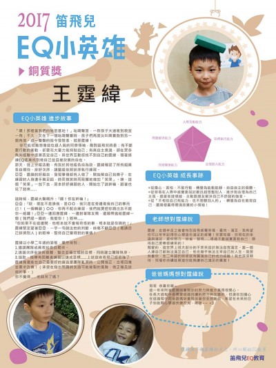 第一次與少偉見面,是在三年前的某次課後遊戲時間。 他拿著積木,一臉興奮、調皮的樣子,瘋狂追著弟弟跑,不斷穿梭在人群中,不管旁邊有誰,當下的少偉就像獵豹一樣朝著目標衝刺,其他的一概不重要! 是的,少偉就是這麼一個情緒強度大、刺激需求量高、喜歡競爭、目標執行力非常強的孩子。對少偉來說,事情的結果比過程重要太多,只要達成自己的目標(抓到獵物),中間發生什麼事情都是小事。 但現在的少偉不再只是以個人為中心,他開始試著去留意自己的行動帶給別人什麼感受。 有一次,全班上街尋找製作愛玉的材料,老師跟著全班一起行動,但卻不見少偉的蹤影。少偉去哪了呢?轉身發現,少偉居然留在團隊最末端,跟每個幫助大家的路人表達感謝。這一個微小的動作,是以前少偉不曾留意的部分,也幾乎不是每個孩子都會注意到的事。 少偉開始知道,厲害不是只有如外顯的鋒芒一樣,一定都要很突出、很亮眼,其實也可以是內斂、沉穩的,在身後穩妥地周全所有事情,甚至讓人感受到溫暖。 除此之外,少偉在團隊遊戲中發現朋友一直在旁邊打鬧,根本沒有認真投入合作任務時,他也不再用以前慣用的打罵模式,把對方臭罵一頓,而是有耐心地提醒朋友他的行為已經帶給團隊負向影響,並且向對方做出明確且合理的要求。當朋友真的開始改變、有具體行動了,少偉還能釋出善意去回饋別人:「我覺得你有變努力!」激起對方願意努力的動機。因此,不僅僅是幫助朋友提升能力,他更讓團隊合作的氣氛變得正向積極…… 少偉的這些轉變,不只我看到了,其實連班上的同學也都看在眼裡,並且一一對他改觀。以前同學看到少偉,可能會畏懼他強烈的情緒、討厭他只顧自己不管別人;現在的少偉反而是個令人感到安心,甚至在分組找隊友時,朋友舉手搶著要跟他一組,完全是一起結伴同行、一起努力的好夥伴了呢!   老師給孩子的話 有句諺語說:「一個人走,固然可以走得快,但一群人走,可以走得更長遠。」少偉,能開始走出自己的象牙塔不容易,我很開心看到你可以擁有自己喜歡的朋友,並且朋友也熱愛著你,這樣的革命情感是非常珍貴的情誼。如果能持續幫自己尋找到更多不一樣的夥伴,我相信你會看到更不同的世界喔!   家長的話: 親愛的少偉,恭喜你獲選EQ小英雄! 你的成長與茁壯,是汗水和淚水的累積,感謝老師們的指導與鼓勵! 未來人生的旅途,希望你能運用笛飛兒所學,融入到待人處事中,動腦解決困難,讓人感受你的溫度,靠自己的能力,作到自己期許與喜歡的自己。 超級愛你的爸媽