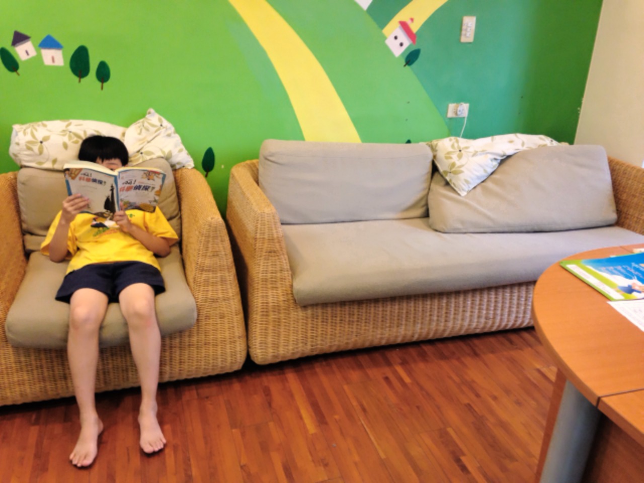 【下課時間-兒童創意及觀點取替能力】 View Larger Image 看的出來有兩個小朋友在玩躲貓貓嗎?偷偷告訴你答案,他們一個躲在凸起來的沙發後面、另一個大剌剌的坐在沙發上看書!鬼經過阿立身邊好多次,但完全沒被發現! 逆向思考、觀點取替的能力讓阿立想出這個隱形披風,贏得躲貓貓王的寶座!下次你想躲哪裡呢? eqauth 2016-03-21T14:50:54+08:00