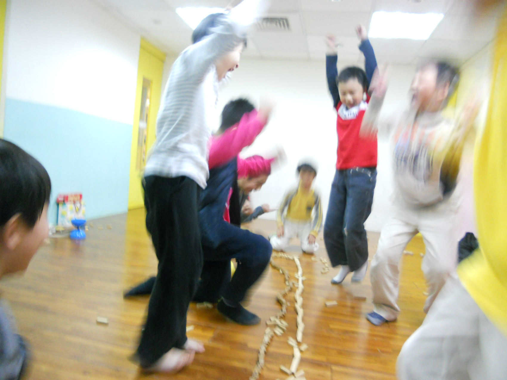 發生什麼驚天動地的喜事?讓我們歡天喜地的跳上跳下,驚呼不已!一定想不到,我們共八個人一起完成:當一百根骨牌排好,手指一推,要無間斷的讓所有骨牌倒下。沒有事先構圖、討論,在經過多次無數次的實驗、失敗、討論,當成功一剎那,簡直要樂翻天啦!