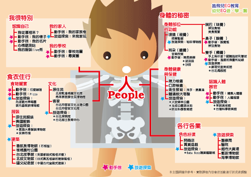 配合孩子的發展現況和興趣所設計的主題網,讓孩子透過探究、實驗、討論及嘗試;引導孩子在學習中,深入提升認知能力,並創造孩子更多元的生活經驗。